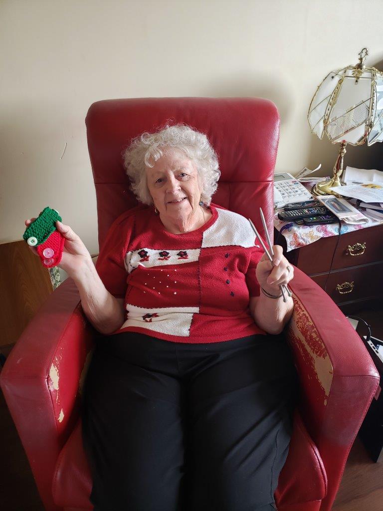 A BIG Thank you to our wonderful residents (Margaret-pictured above and Ingrid) who have been knitting and crocheting up some very helpful ear savers for our staff! We are all in this together!